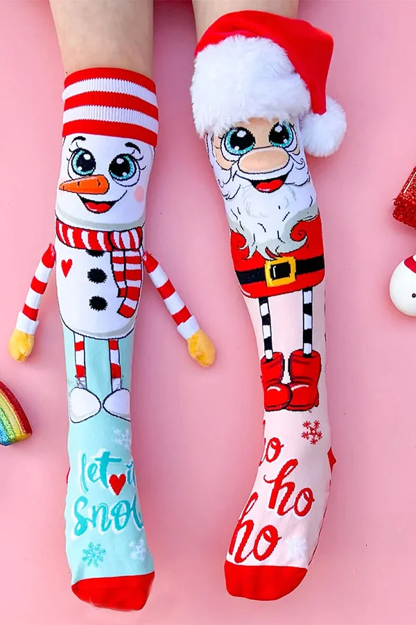 May the magic of Santa and Snowman MADMIA Socks light your world all year around. Made with plush Snowman arms and Santa Christmas hat attached, there is no better socks to wear to spread joy and happiness, whilst wishing everyone a very Merry Christmas and Happy New Year! Socks - Cold hand wash only with extra care with wings and other accessories. For optimal care of our socks, we recommend a cold hand wash, taking extra care with wings or other accessories. Proper washing is essential to maintain the quality and integrity of our products.